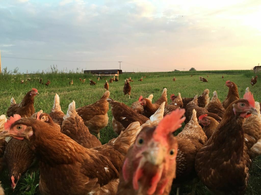 Legehennen in Freilandhaltung, eigene Aufzucht von Bruderhähnen, Rindermast