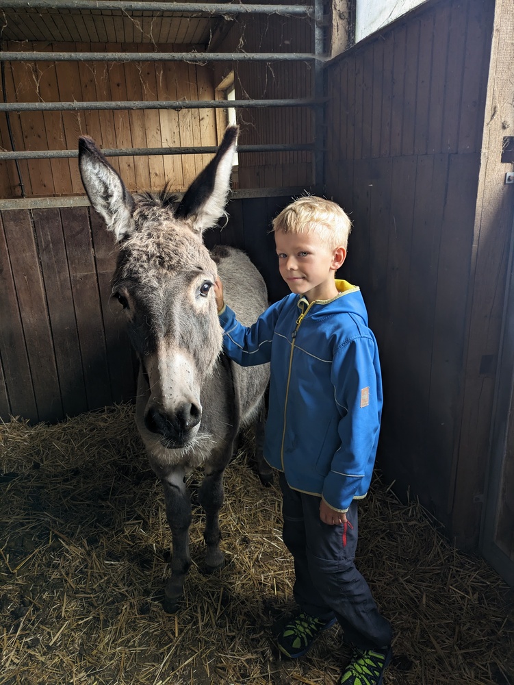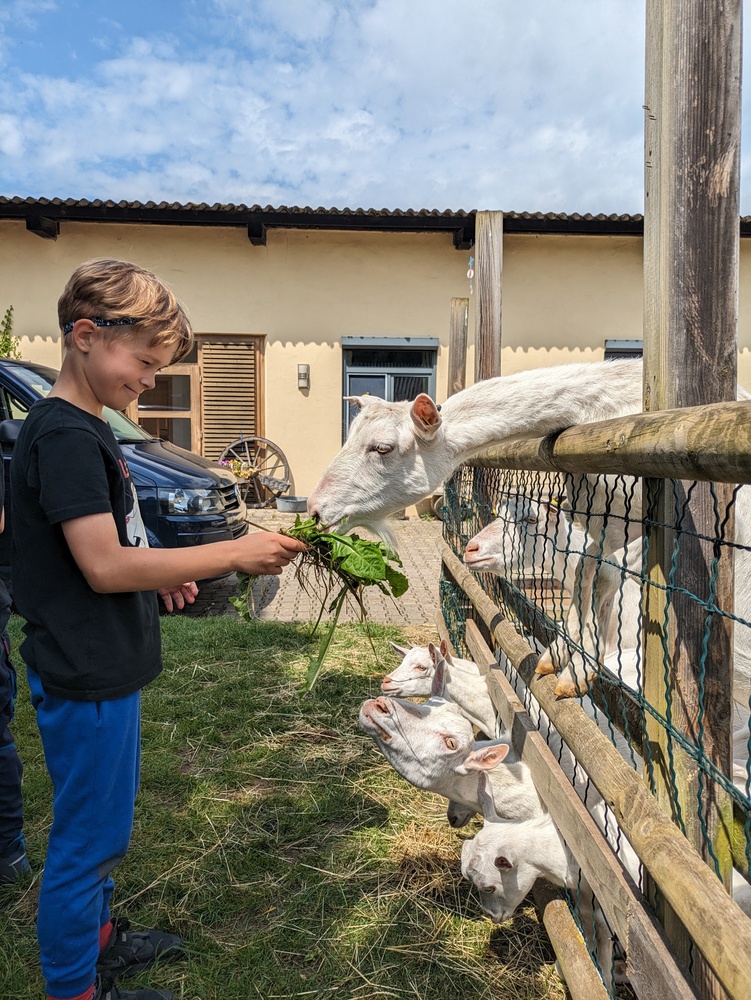 | Aktivitäten | Hof erkunden, Tiere versorgen, (Geflügel, Ziegen, Pony, Hasen, Esel, Schweine); Eier sammeln, Feldarbeit, Gemüse, Brot backen |