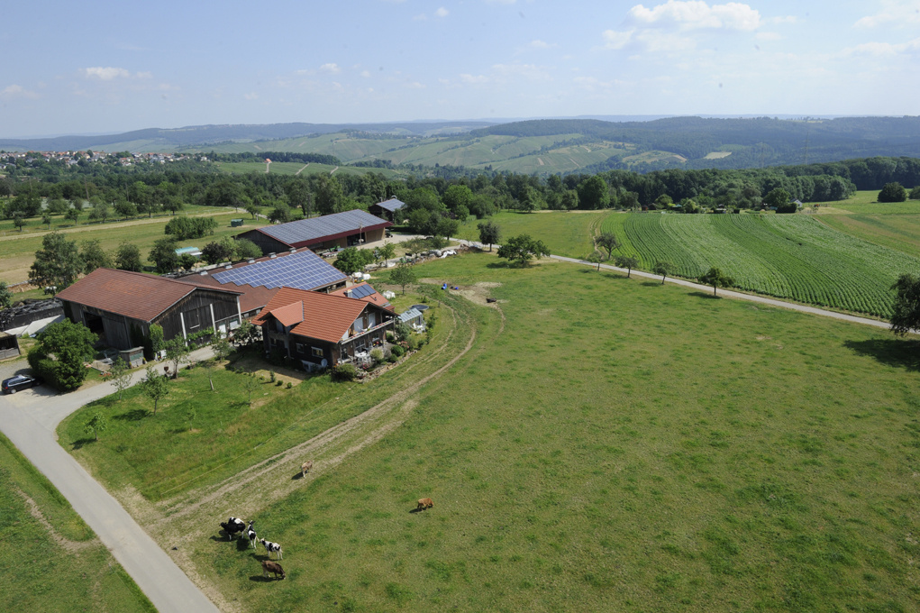 Unser Familienbetrieb liegt idyllisch auf dem schönen Schurwald, umgeben von Rems- und Neckartal.Ein Standbein ist unsere Milchkuhherde, die täglich gemolken wird und den Sommer über saftige Wiesen beweidet. Die kleinen Kälber der Kühe wachsen alle bei ihrer Mama oder einer Amme auf. Aus ihnen wird später ein Bulle, den wir schlachten oder eine Milchkuh.