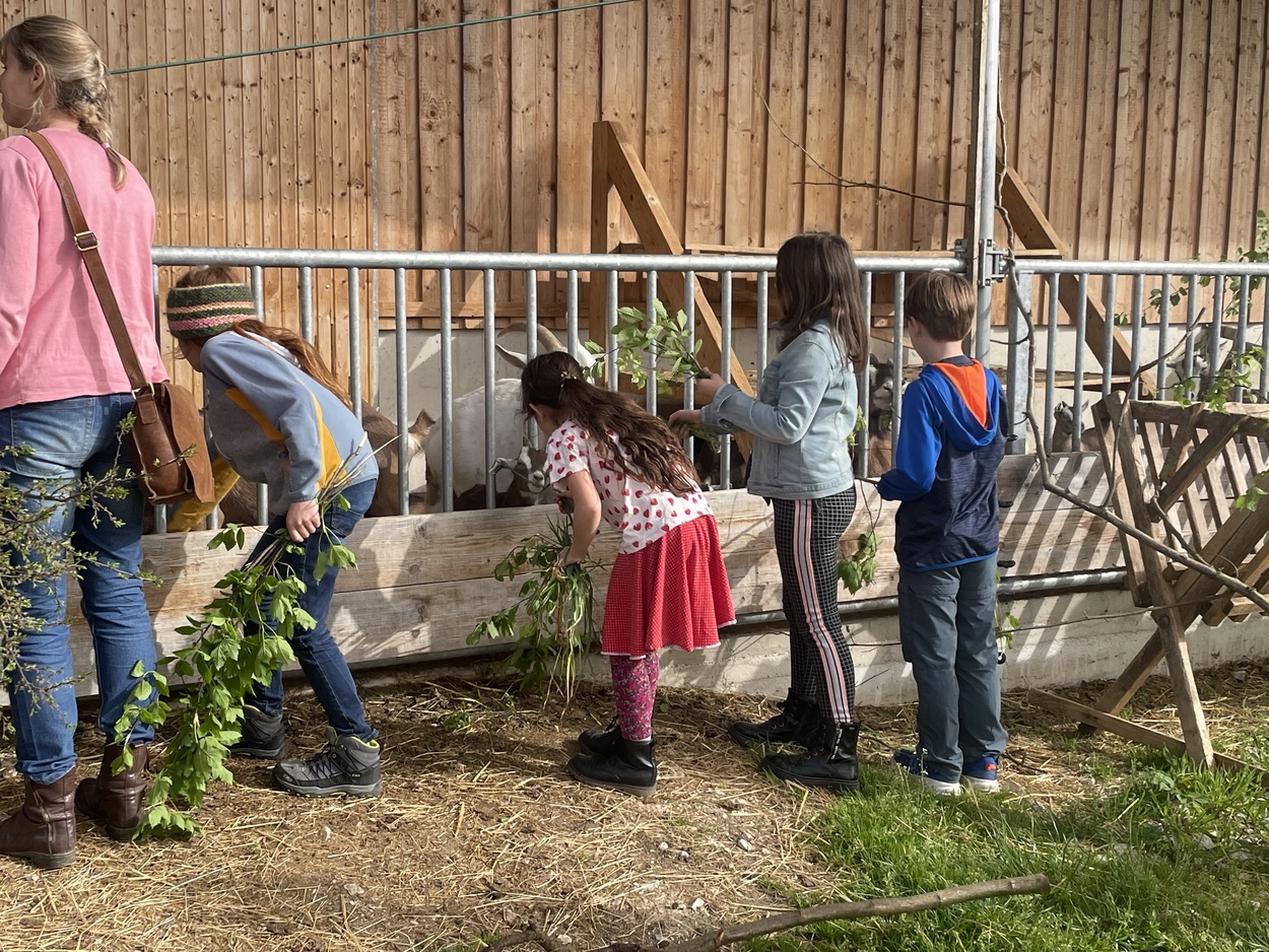 Wir haben einen kleinen Milchziegenbetrieb und verarbeiten die Milch unserer Ziegen komplett selbst zu Käse. Mit Kindergruppen auf dem Hof füttern wir die Ziegen und streicheln sie. Ein kleines Hofquiz regt die Kinder zum selber Nachdenken und beobachten an. Am lustigsten ist es bei uns im Stall im Frühling, wenn die Zicklein durch den Stall toben.Milchverarbeitung und Grünland sind weitere Themen, die wir bearbeiten können.