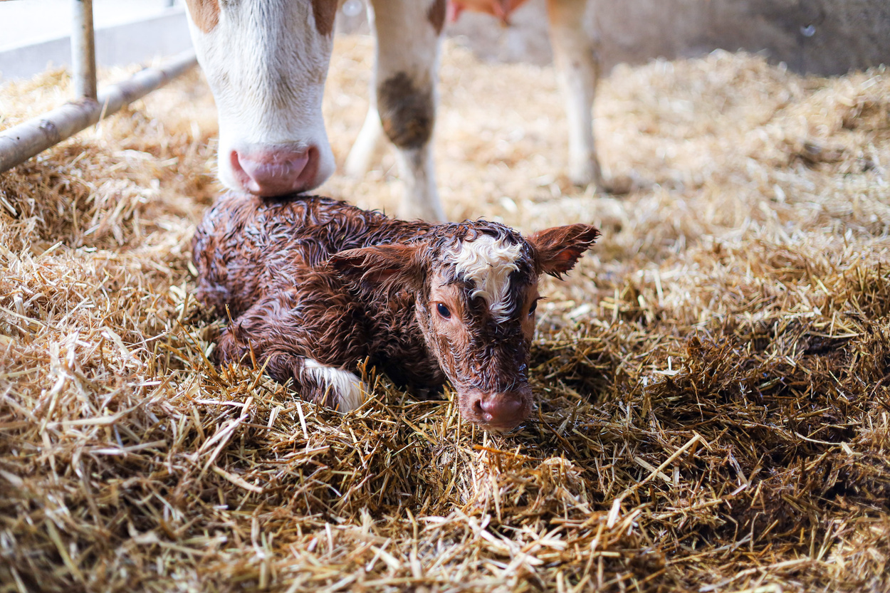 Milchkühe, Kälber und Rinder, Legehühner im Mobilstall und Kamerunschafe